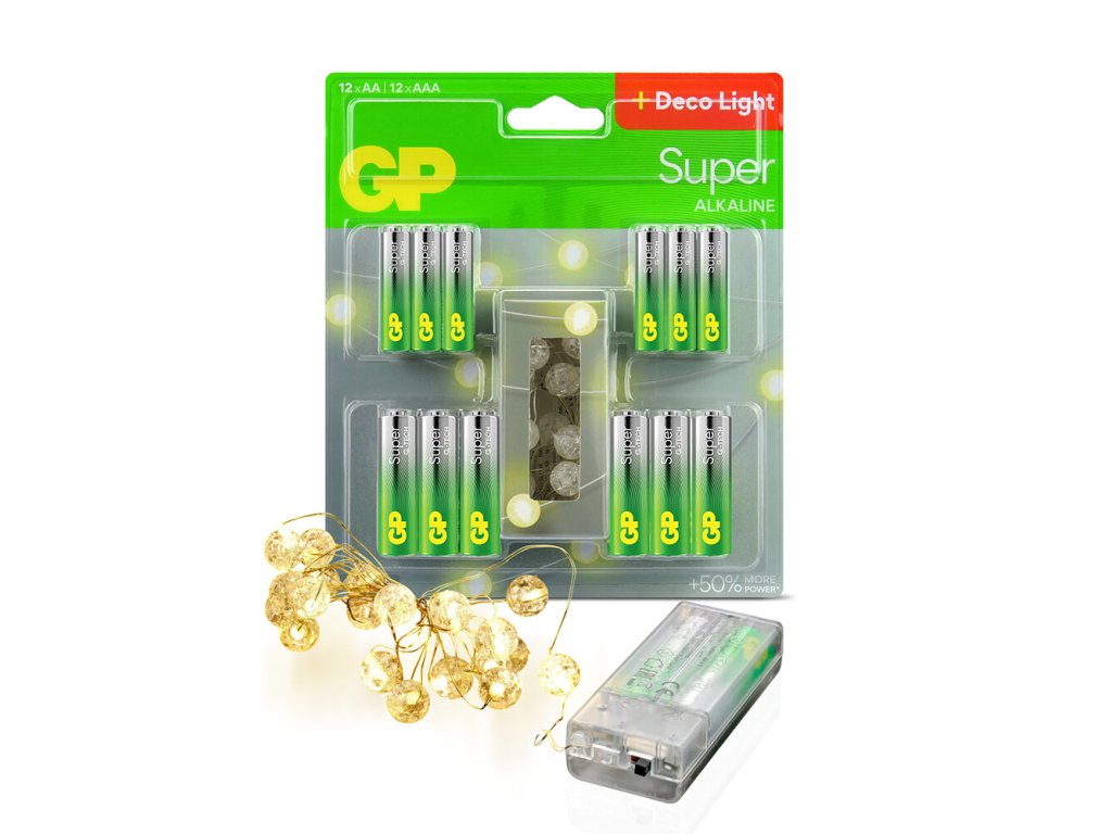 - GP-24A, 12ks + GP-15A, 12ks batéria Super Alkalická + LED vianočné osvetlenie