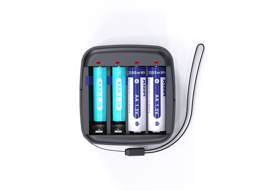 - nezávislé štyri sloty pre nabíjanie AA a AAA batérií