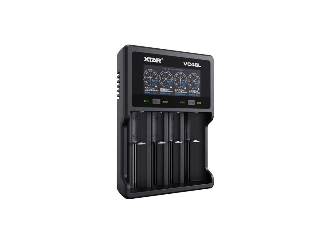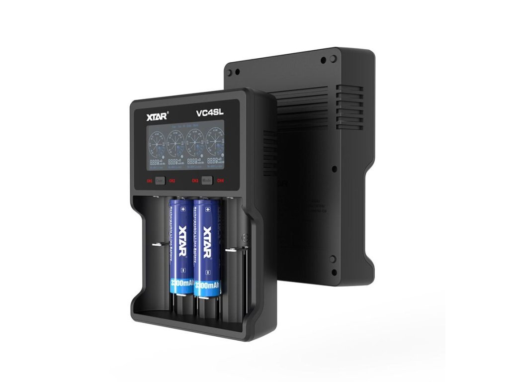 XTAR VC4SL je univerzálna štvorkanálová USB nabíjačka pre 3,7V/ 3,6V Li-ion a 1,2V NiMH/ NiCd akumulátory.